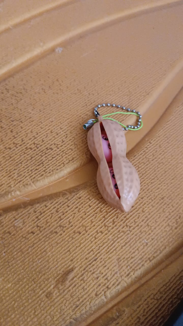 - Funny Design - Fun peanut shape designed keychain toy. Peanut popper fidget toys are stuffed with cute beans. When you give it a squeeze...one of the little beans pops out at you! When you let go, the bean hides back inside the pod. It comes with a rope, a silver chain